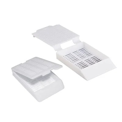 - Material POM Resistente a Solventes: suporta soluções de descalcificação e reagentes histológicos.